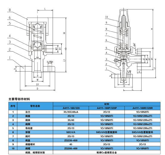 彈簧微啟式高壓安全閥(A41H-160/A41Y-320)適用于工作溫度≤200℃的空氣、氮氫混合氣、水等介質(zhì)的設(shè)備和管路上。A41Y-160P/A41Y-320P型彈簧微啟式安全閥適于工作溫度≤200℃有腐蝕性的氣體或液體介質(zhì)的設(shè)備和管路上,作為超壓保護裝置。當設(shè)備和管路內(nèi)壓力超過允許值時,閥門自動開啟,繼而全量排放,當壓力降降至規(guī)定值時,閥門自動關(guān)閉,保證設(shè)備和管路的安全運行。