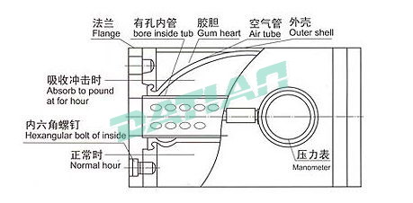 Y900P水錘消除器采用活塞氣囊式內(nèi)部為密封的容氣腔。下端為活塞,當(dāng)沖擊波傳入水錘消除器時(shí),水擊波作用于活塞上,活塞將被推往容氣腔的方向運(yùn)動(dòng),活塞在一定壓力的氣體和不規(guī)則水擊波雙重作用下做上下運(yùn)動(dòng),形成一個(gè)動(dòng)態(tài)的平衡,這樣就消除了不規(guī)則的水擊波震蕩。