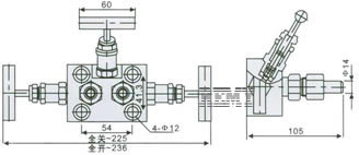SF-2B型一體化三閥組由二只取壓閥與平衡閥組成,可與EJA、115Ⅰ等差變送器直接連接,導(dǎo)通或斷開(kāi)測(cè)量點(diǎn),進(jìn)口為Φ14接管,與引壓管焊接。平衡閥斜置,方便操作。