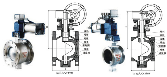 結(jié)構(gòu)特點(diǎn) 1、V型球閥采用蝶形彈簧或圓柱彈簧加載的可動(dòng)閥座結(jié)構(gòu),閥座與V型球芯不產(chǎn)生卡阻或脫離等問題,密封可靠,使用命長(zhǎng); 2、V型切口球芯與閥座間有剪切作用,特別適用于含纖維、微小固體顆粒、料漿等介質(zhì); 3、球體與閥座密封根據(jù)工況不同,可分別采用軟密封、噴焊鎳基合金(硬度大于HRC60)、超音速噴涂鎢鈷合金(硬度大于HRC70)及特種硬化材料等多種先進(jìn)工藝,適用各種苛刻工況,軟密封適用200℃以下工況,硬密封碳鋼不超過425℃,不銹鋼不超過600℃。 4、蝸輪傳動(dòng)具有精確調(diào)節(jié)和可靠定位功能,流量特性近似等百分比,可調(diào)范圍大,調(diào)節(jié)精度高; 5、全開時(shí)流通能力大,壓力損失小,介質(zhì)不會(huì)沉積在閥體中腔。