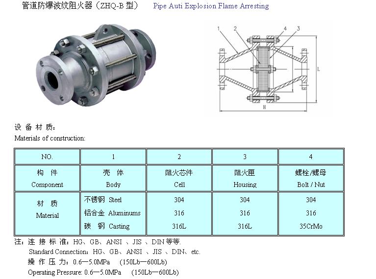 氫氣阻火器是用來阻止氫氣火焰向外蔓延的安全裝置。它由一種能夠通過氣體的、具有許多細小通道或縫隙的固體材料(阻火元件)所組成。要求阻火元件的縫隙或通道盡量小,因而當火焰進入阻火器后,被阻火元件分成許多細小的火焰流,由于傳熱作用(氣體被冷卻)和器壁效應,火焰流猝滅。