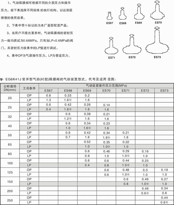 氣動隔膜閥可根據(jù)不同的介質壓力和操作壓力,選擇不同的執(zhí)行機構,以達到理想的使用效果。英標常開式氣動隔膜閥(EG6K41J)注意事項(安裝前請仔細閱讀本公司提供的說明書): (1)、由于隔膜為易損件,應視介質特性而定期更換。 (2)、受隔膜材料限制,隔膜閥適用于低壓和溫度相對不高的場合。 (3)、一般不宜用于溫度高于60度及輸送有機溶劑和強氧化介質的管路中,也不宜在較高壓力的管路中使用。