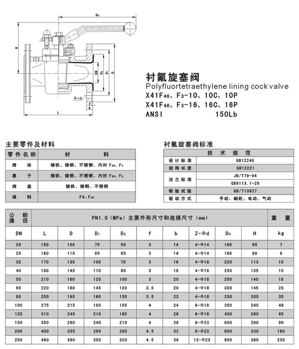 X43F46襯氟旋塞閥是用帶通孔的塞體作啟閉件,塞體隨閥桿轉(zhuǎn)動(dòng),以實(shí)現(xiàn)啟閉動(dòng)作的閥門。旋塞閥啟閉迅速、流體阻力小。基本系列有襯里旋塞閥(全襯型) 和襯套旋塞閥(半襯型)。旋塞閥多用于截?cái)嘟橘|(zhì)流動(dòng),也可分配(三通旋塞閥)。襯氟旋塞閥是為了適應(yīng)一些具有強(qiáng)酸、強(qiáng)堿的腐蝕性環(huán)境,石油、化工、食品等多個(gè)特殊領(lǐng)域的需要,在常規(guī)旋塞閥的閥內(nèi)和閥板上襯聚四氟,使介質(zhì)和閥體隔離,達(dá)到防腐的效果。襯氟旋塞閥在常規(guī)條件下可以替代不銹鋼閥體,具有更高的性價(jià)比。特別是具有嚴(yán)重腐蝕性介質(zhì)的使用場合,如:硫酸、氫氟酸、磷酸、氯氣、強(qiáng)堿、王水等具有強(qiáng)腐蝕性的介質(zhì)。